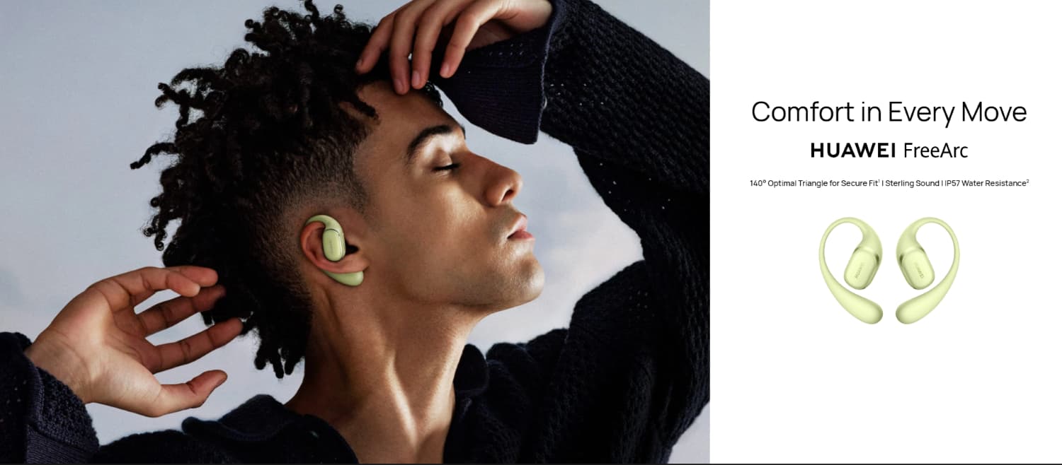 هواوي فري أرك FreeArc بتقدم لك تجربة استماع مريحة بتصميم مفتوح Open-Ear، صوت فائق الجودة، مقاومة للماء والغبار، وعمر بطارية طويل، مع تصميم مميز ومريح يناسب الاستخدام اليومي المكثف