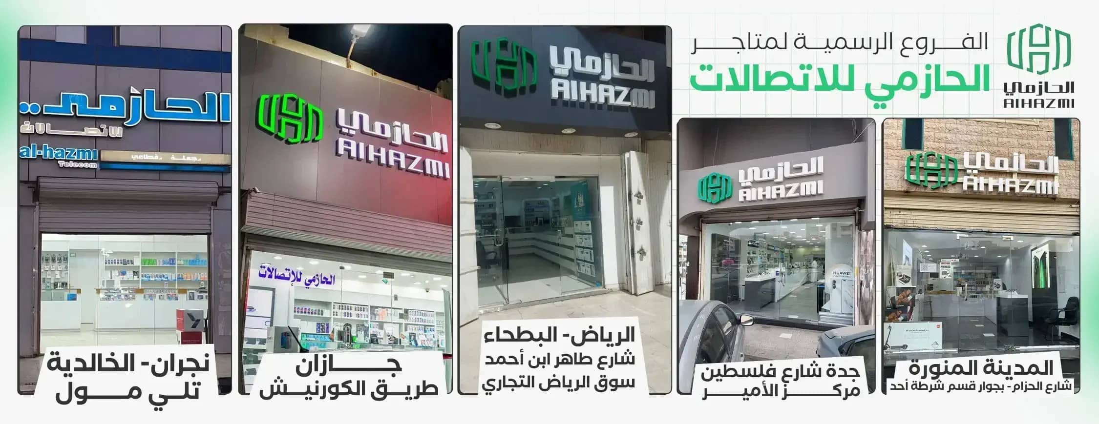 إذا كنت تفضل التسوق بشكل شخصي، يمكنك زيارة أي من فروع الحازمي للاتصالات المنتشرة في السعودية، مثل: