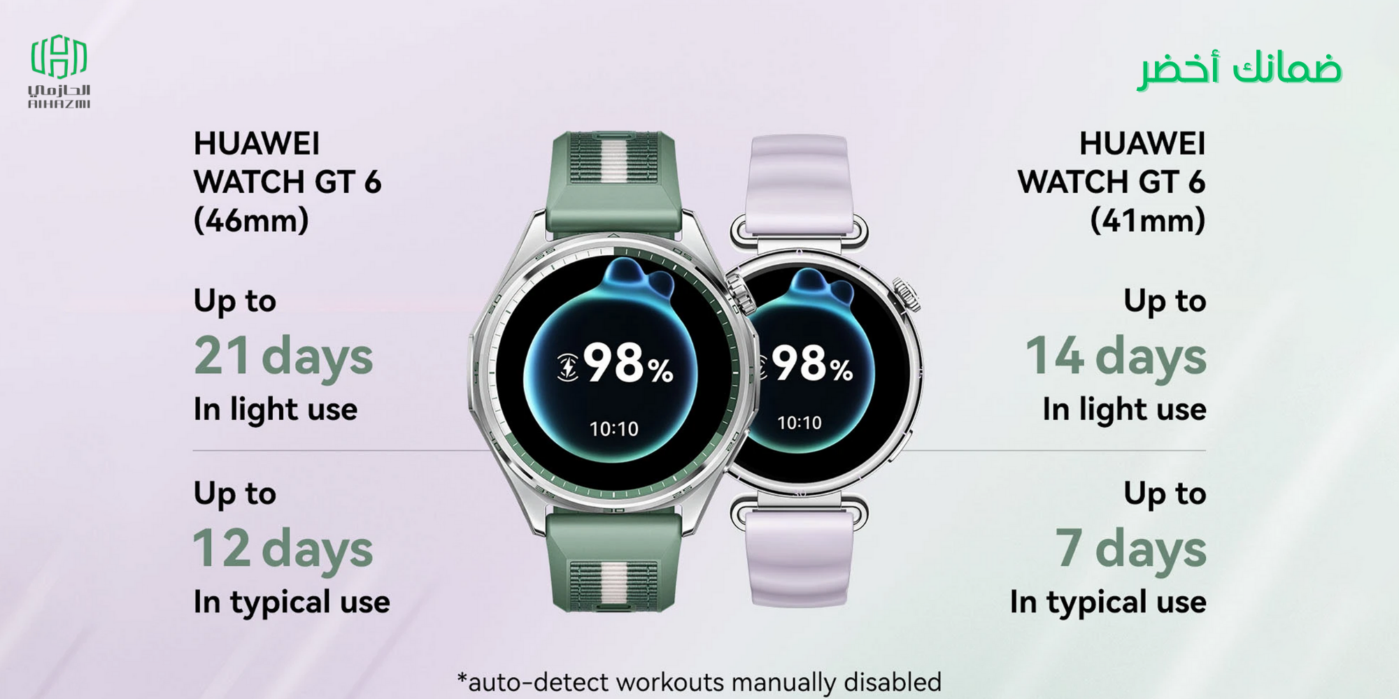 - البطارية: تدوم 21 يومًا في الاستعمال الخفيف، أو 12 يومًا في الاستخدام المعتاد، مع خيارات الشاشة الدائمة (AOD)