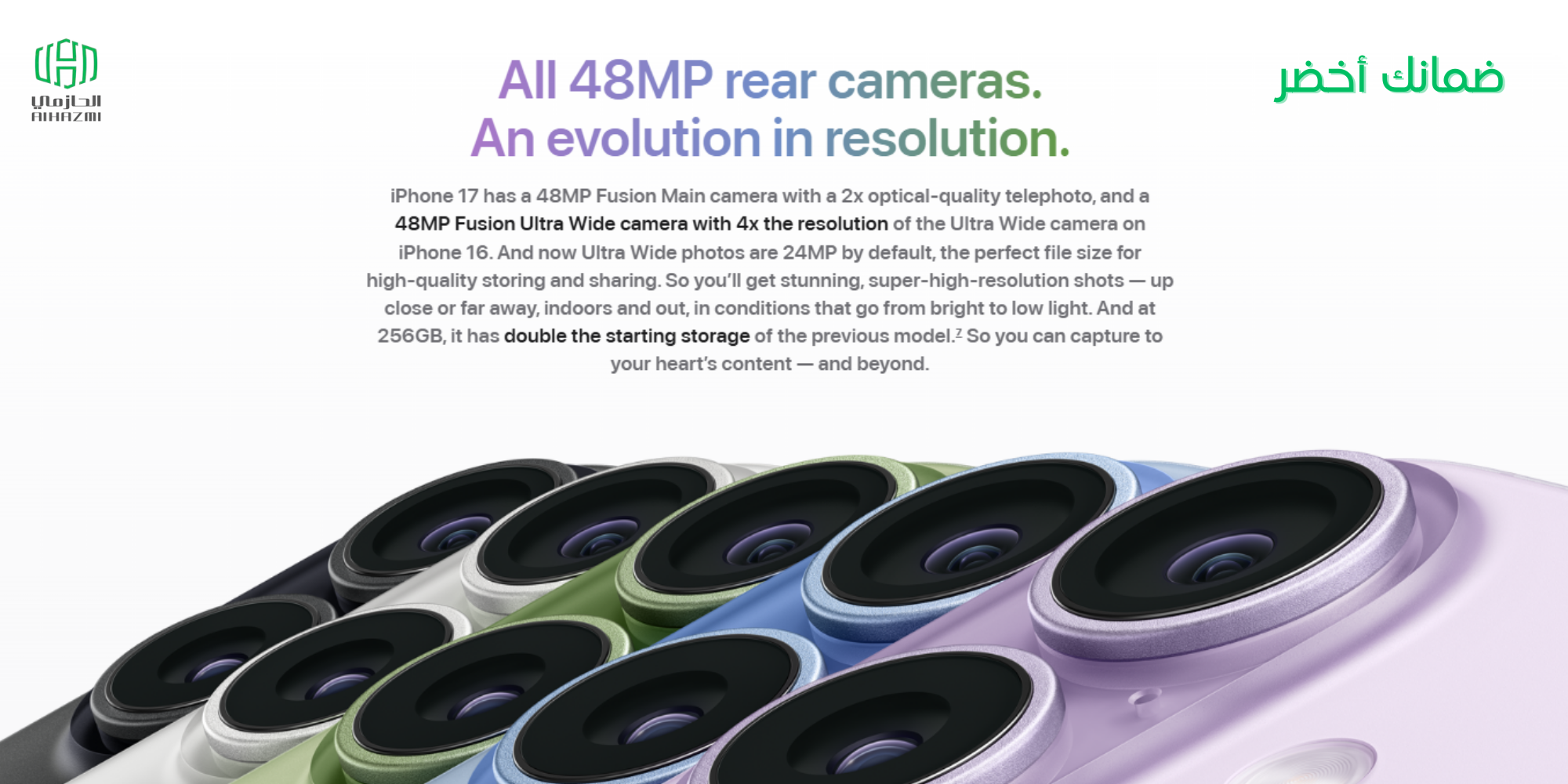 الكاميرا الخاصه بجهاز ابل ايفون 17 256 جيجا 5G الوان متعددة اصدار عالمي